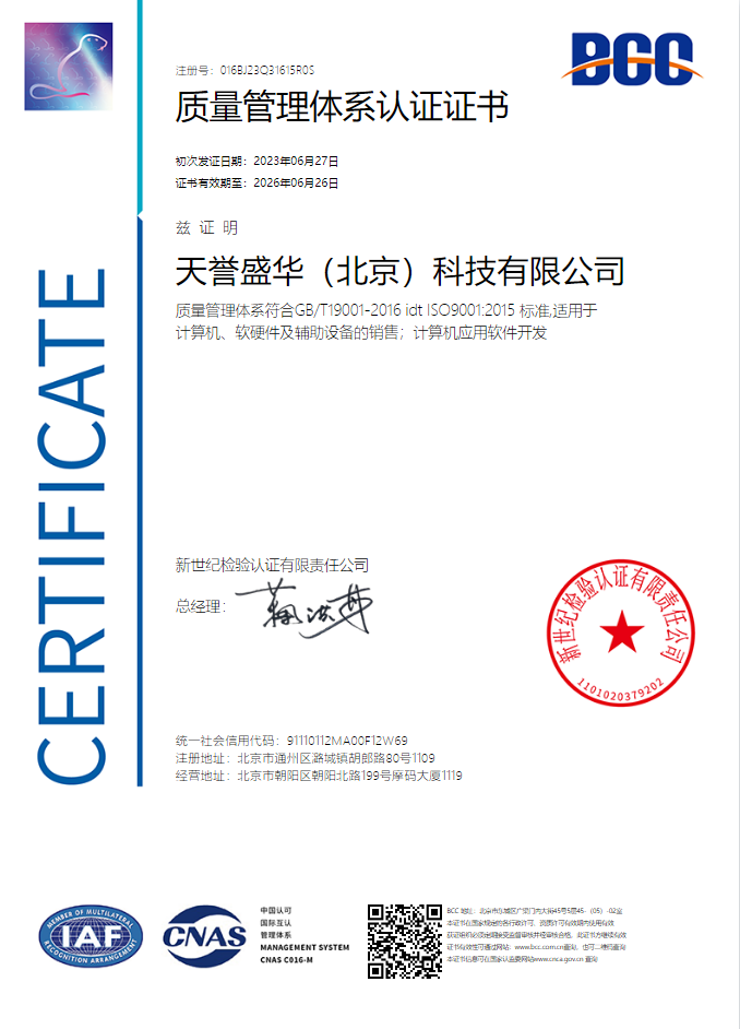 公司简介 公司成立于2017年,是一家集IT产品销售、系统集成和技术服务于一身的IT服务商。公司立足高端IT技术服务,专注于打造一支高技术、高效率、高素质的专业技术团队。公司与国内外知名IT厂商展开了广泛的合作,不断积累和发挥自身的软、硬件技术优势,提供科学精准、人性化的专业IT技术服务,通过我们的为企业信息化平台保驾护航,为用户创造最大化的价值,用户的成功就是天誉盛华的成功 资质证书 合作客户